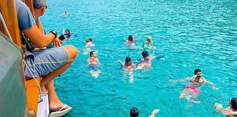 Observação: o passeio, as atividades e os comes e bebes mencionados acima são gratuitos para os nossos convidados. O barco também oferece um cardápio variado de drinks, disponível para consumo individual à parte.